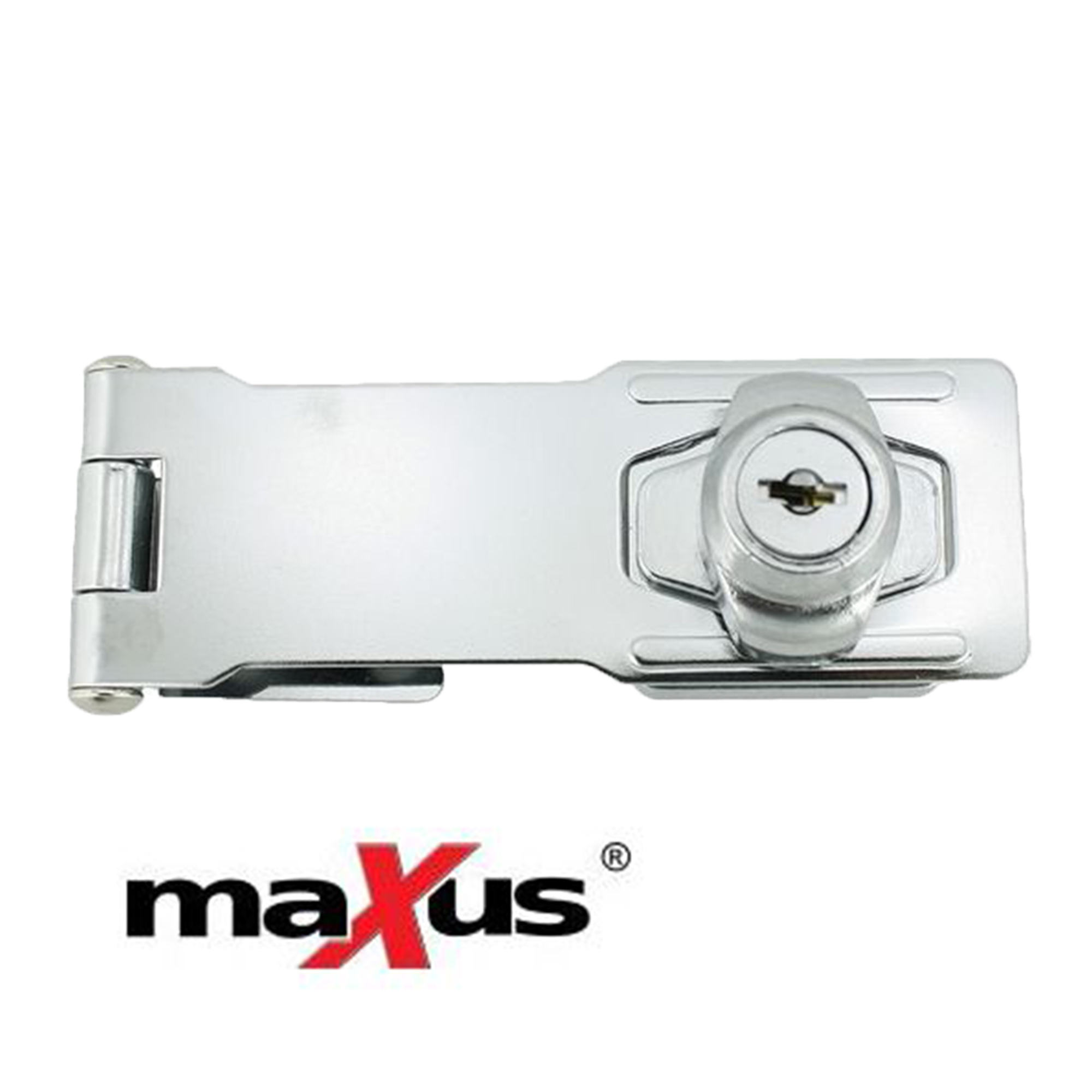 Simply close hasp and twist lock to secure. Use of cylinder type key releases staple for opening. Includes fixing screws.